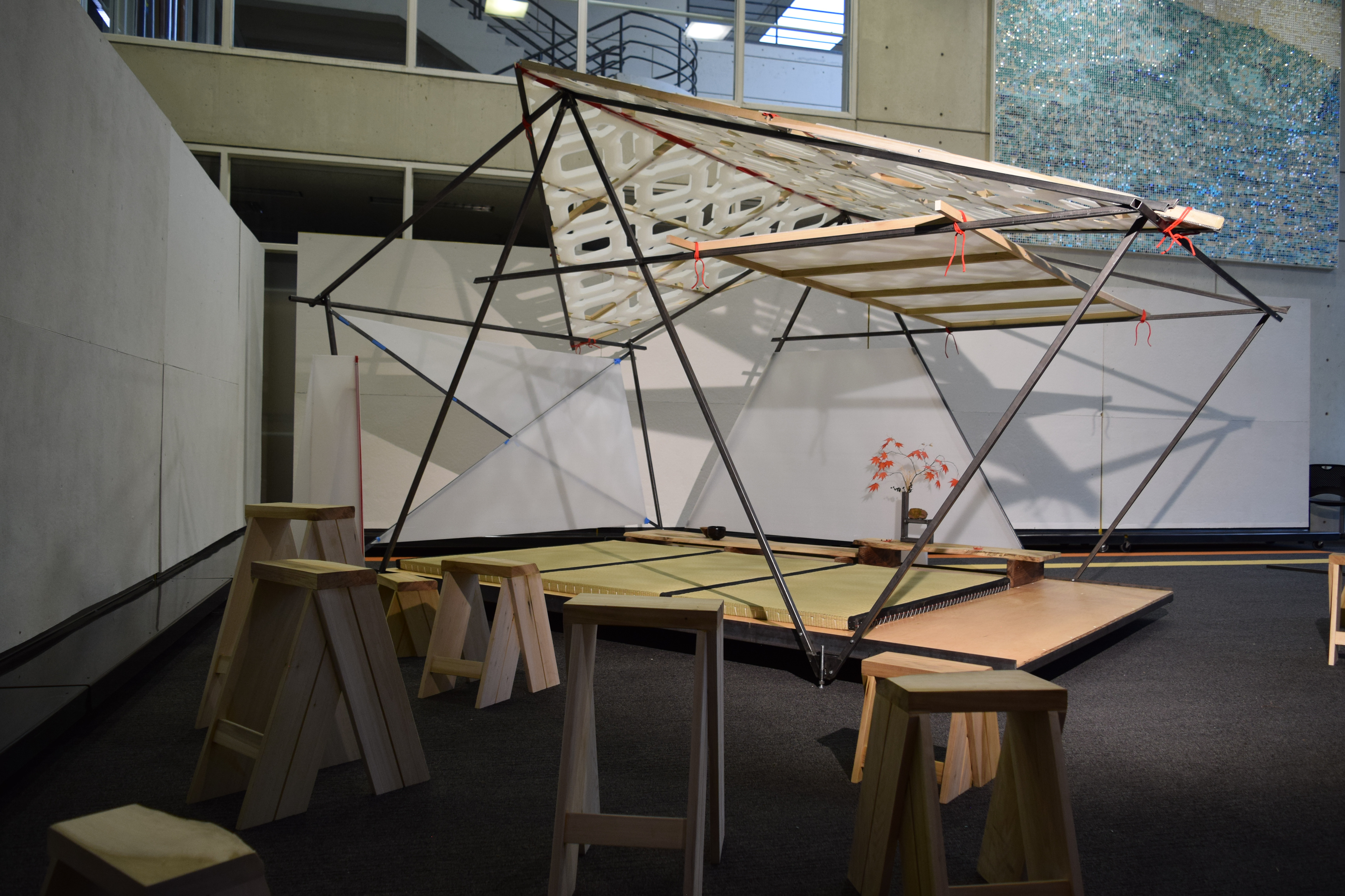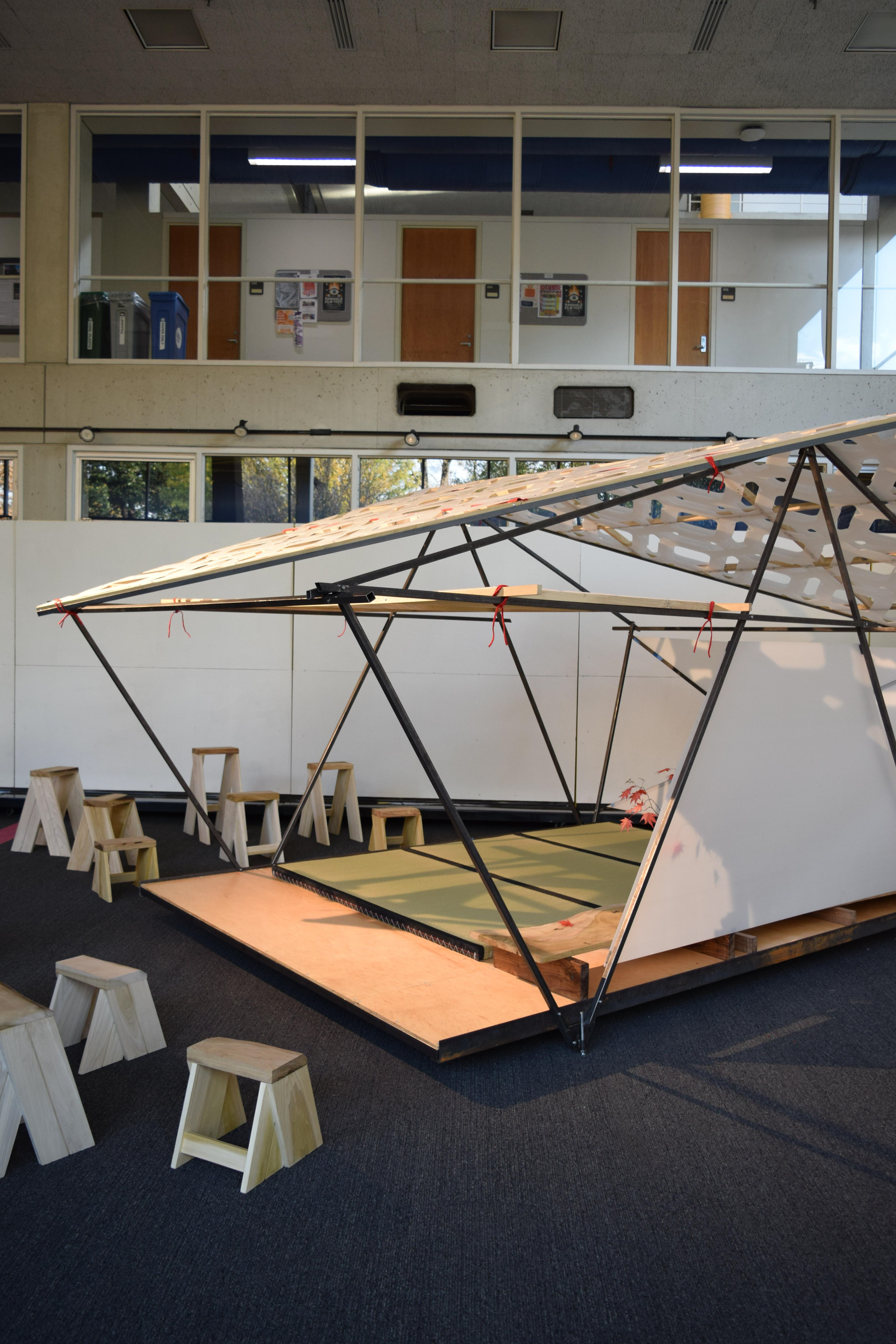 For a demonstration of the Japanese tea ceremony to promote cultural activities, we designed and built a contemporary portable teahouse to be exhibited at the Knoxville Asia Festival and similar cultural receptions and gatherings in the East Tennessee region. When not used for demonstration, the tea house will be sited and implemented as a campus respite—a place of peacefulness and promotion of mental well-being.